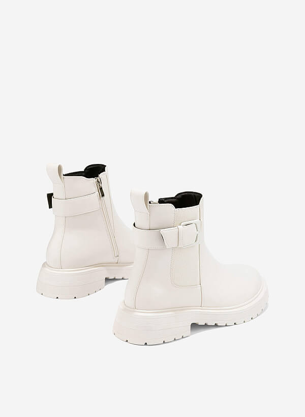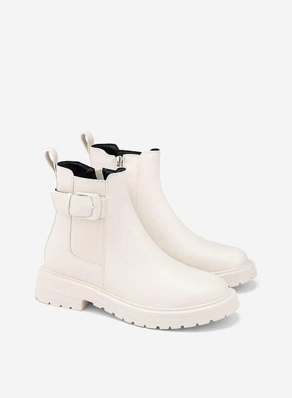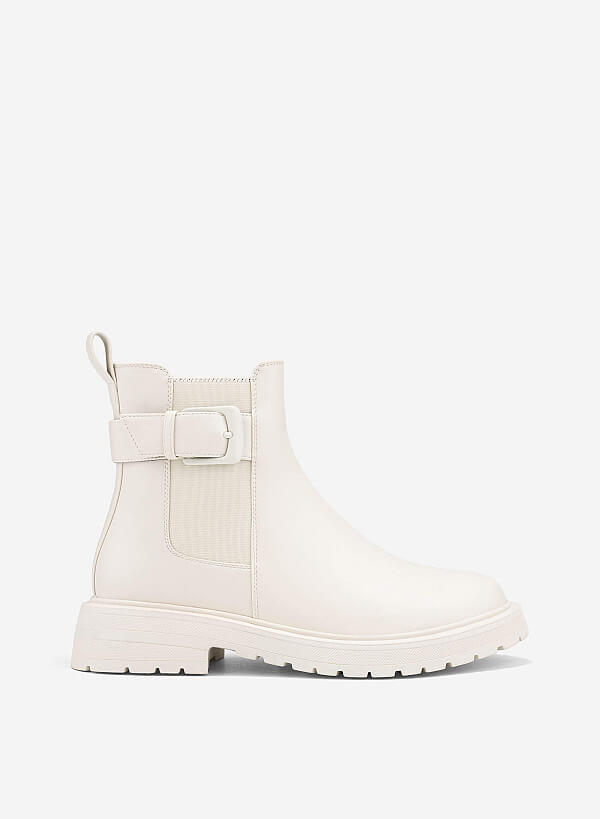 Chelsea Boots đế Chunky nhấn khóa trang trí mang đến vẻ đẹp hiện đại và cá tính cho những cô nàng yêu thích phong cách mạnh mẽ pha chút thanh lịch. Thiết kế cổ điển của Chelsea boots được làm mới bằng phần đế chunky nổi bật và chi tiết khóa kim loại sang trọng, tạo điểm nhấn thời trang ấn tượng.