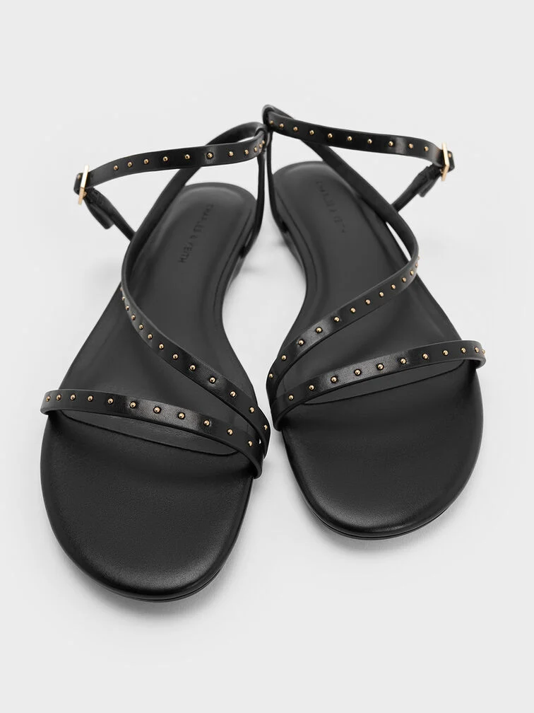 Tôn vinh nét đẹp tối giản cùng sự tiện dụng trong từng bước chân, đôi sandal quai ngang đế bệt màu đen là item không thể thiếu trong tủ giày của mọi cô nàng hiện đại. Thiết kế nhẹ nhàng với các đường quai mảnh vắt chéo tinh tế, được đính đinh tán ánh vàng nhỏ nhắn, tạo điểm nhấn độc đáo mà không quá phô trương.